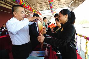 伴随着欢快的乐曲声,出席闭幕式的校领导为本次运动会获奖单位和个人颁发了奖牌、锦旗和证书。