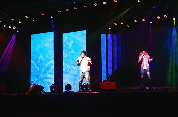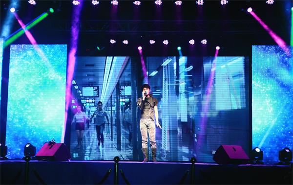 伴随着动感的韵律,90后唱作型男歌手孙子涵以一首原创作品《唐人》拉开了歌友会序幕,场内观众热情瞬间被激起,手中的银光棒跟随跳动的音符摆动,歌声夹杂着欢呼声、尖叫声响彻整个校园,一阵阵强有力的鼓点震撼着现场观众的听觉。孙子涵为歌迷们演唱了他第四张个人专辑《涵剧先森》的歌曲《巴黎夜雨》、《伤心为礼物》,节奏分明、韵律感强,不仅彰显他独特的音乐魅力,同时在词曲中更是牵引着他音乐路的跌宕起伏。激情动听的歌声使歌友会高潮迭起,掌声如潮,场面异常火爆。当他演唱完一首《连借口都没有》歌曲后,我校视觉艺术学院党总支书记李可心登台演唱了一首原创歌曲《在风中》,为歌迷朋友们呈现了一场激情四射的时尚视觉盛宴,点燃了观众热情,带动了全场气氛,学生们手挥银光棒和手环高呼着、呐喊着……