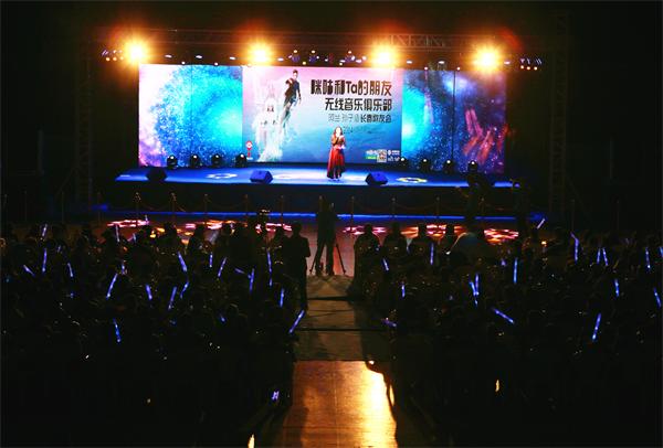 9月26日晚7时,长春科技学院体育馆内流光溢彩,鲜花馥郁,歌声婉转,热闹非凡,2014中国移动无线音乐俱乐部“咪咕和Ta的朋友”阿兰·孙子涵长春歌友会在这里隆重举办。我校师生、移动公司会员、双阳区歌迷朋友近4000人观看了演出。