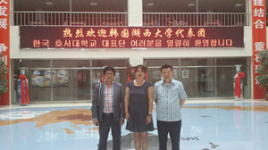 6月30日韩国湖西大学代表团访问我校。代表团成员包括:韩国湖西大学国际交流合作处处长朴雪豪,副处长金是用。我校党委副书记、外国语学院院长谢文义,信息工程学院院长杨继、外事处副处长吴宛蒙热情接待了代表团。