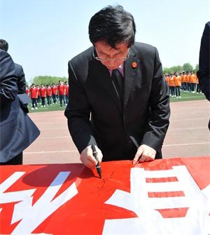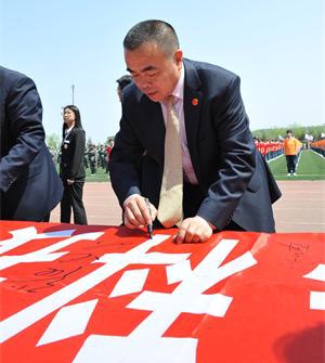 在热烈的掌声中,张电达董事长宣布长春科技学院“走下网络、走出宿舍、走向操场”主题群众性课外体育锻炼活动启动仪式开幕。