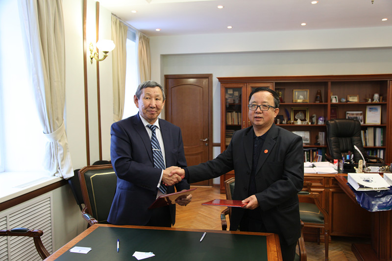 12月11日下午,东北联邦大学副校长瓦西里.瓦西里耶夫热情接待了我校代表团,赵中岳校长向瓦西里校长详细介绍了我校的院系设置、专业结构,办学特色,表示很高兴能与东北联邦大学合作。瓦西里校长也介绍了东北联邦大学的概况,并表示非常愿意与我校进行深入的合作,教师以及学生的长短期交流、科研合作等。最后两校签订友好合作协议书,互赠礼物,合影留念。最后,东北联邦大学东方学院院长娜伊娜带领代表团参观了东北联邦大学的附属博物馆,进一步了解了雅库特民族的发展历程。