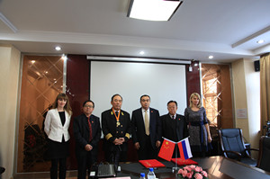 2014年2月19日,俄罗斯远东渔业国立技术大学校长格奥尔基•尼古拉耶维奇、国际交流处长安娜西达亚•维克多罗夫娜、国际学院副院长阿克桑娜•.弗拉基米罗夫娜、国际交流专家马克西姆•弗拉基米洛维奇一行访问我校。我校董事长张电达、副校长赵中岳、外国语学院院长谢文义、财经管理学院院长王晓光、工商管理学院院长吴安平、信息工程学院院长杨继、学校办公室主任宋学山以及外事处副处长吴宛蒙热情接待了代表团。