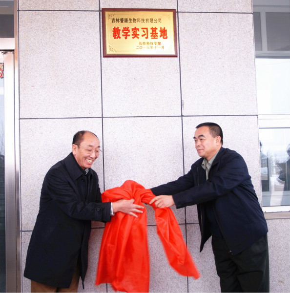 最后,由学校张电达董事长和吉林睿康生物科技有限公司刘长志董事长共同为实习基地揭牌。