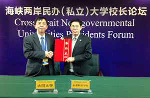 会议期间我校与参会的台湾各高校进行了友好的交流,在两岸教育交流方面进行了深入的探讨。针对我校的专业发展情况,我校与台湾中原大学、大同大学达成了合作意向,并签订了合作框架协议,在师生交流、科研合作等方面加强合作。