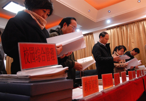郑学华组长就检查内容、检查方式和流程作了说明。检查组通过观看专题片《春华秋实》了解到沐浴改革春风的长春科技学院崭新的校风校貌,感受到学校奋进的步履和发展脉动。根据工作流程和检查项目,检查组查阅了精神文明建设和党建工作等的相关基础资料,并参观了道德讲堂,踏查了体育馆、图书馆、国际会议中心、文体活动中心、学生宿舍、食堂等教育教学和服务设施。
