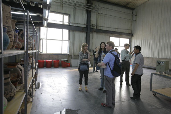 午时,乔治·格林(Jason h green)先生来视觉艺术学院教学楼,对教学环境进行参观。下午2点,乔治·格林先生在学术报告厅作专题讲座《我的艺术——几何形体的变异》,并展示了他的陶瓷艺术。会后,乔治·格林先生与学生进行学术问题探讨。