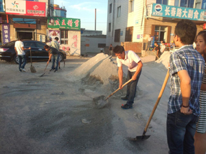 8月25日17时许,工商管理学院2012级工商管理(物流管理)2班团支书郑承耀带领本专业团员来到双阳区石油小区帮助居民铺路。