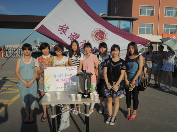 第三站,是学校后门的建筑工地,为那些在烈日下辛勤劳作的农民工们送上我们亲手制作的饮品。看到他们接过盛满深情的杯子时脸上露出的朴实笑容,我们感受到了付出和奉献的喜悦,也让我们以真情付出给这些生活在社会底层的农民工们而感到骄傲。