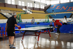 由校工会、军体教研部联办、社团联合会协办的第七届教职工乒乓球比赛4月17日中午在学校体育馆开拍。来自各分院、机关各处室的近60名选手参加了比赛。张少华、谷颖、赵鹏飞分别蝉联单打冠军,谷颖、邹影获女子双打冠军,赵鹏飞、胡嘉树获男子双打冠军,张少华、谷颖获混双冠军。
