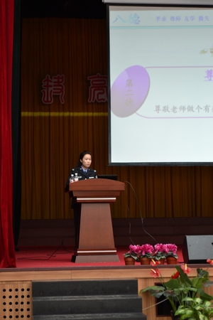 《用“八德”走好大学路》阐释了“ 新八德”即“孝亲、尊师、友学、长善、救失、立志、守法和践行《弟子规”的具体含义,启发大学生们对如何孝顺父母、正确处理情感纠结、在生活中勤俭节约等问题作深入思考,些许愧疚与自责,坚定了学生们以国学经典为座右铭做人做事的信心;《学习"八德"做一个有理想的农民企业家》的演讲者,恪守懂得感恩、重视回馈社会的理念,以艰辛的创业经历,披露了获得企业成功离不开社会这个厚重土壤的成功秘诀;《大学生如何经营未来幸福人生?》的精彩演讲,结合现实生活中的具体案例,揭示出道德缺失的社会现象,透析了一些青年人的利己心理,希望当代大学生坚守诚信,以道德形成的“正能量”培养勿怒、勿怨、肯吃苦的品质,努力将自己打造成德才兼备的人才。