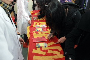 为加深对艾滋病的认识,增强防艾能力,消除高危行为,让大学生成为艾滋病防治的志愿者,11月2日下午,我校举办了大学生预防艾滋病专题讲座,由双阳区疾控制中心专家王振宇主任主讲预防艾滋病常识,500多名大学生在艾滋病防治志愿者名单上签字后佩戴红丝带走进会场。
