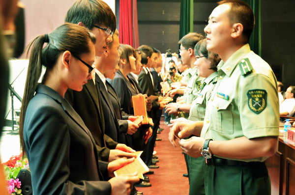 吉林省高校工委副书记、教育厅副厅长孙维杰,长春市委宣传部高教处处长郑学华、省民政厅双拥办于明坤、省教育厅思政处乔东升,吉林陆军预备役炮兵师师长王国军、政治部主任苏伟等领导出席,吉林东华教育集团总裁、吉林农业大学发展学院董事长张电达,校长兼党委书记宗占国、副校长栾玉振、赵中岳、李华楠出席仪式,受助学生及大学生预备役营学生近千人参会。