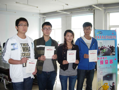 我校职业技术学院由王和平、王丽英老师指导,由李国庆、孙宝鑫、胡艳丽、张利国四名学生参加的代表队,带着设计制作的“自动喷水擦窗器”参赛作品,代表吉林农业大学发展学院参加了此次大赛的激烈角逐,在为期两天的赛程中,我校代表队参加了专家组答辩、专家组观摩、专家组复审等项目的比赛,最终在激烈的竞争中,荣获了本次大赛 “二等奖”。