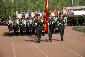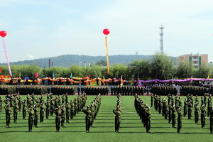 董事长张电达兴致勃勃地检阅了新生军训部队,对他们在军训中体现出的集体英雄主义精神表示赞赏,对他们勤学苦练“流血流汗不流泪,掉皮掉肉不掉队”坚忍品格致以崇高的敬意。军训团将士以昂扬的姿态、严整的军容接受大会主席团的检阅,用精彩的军体拳表演汇报军事训练成果。