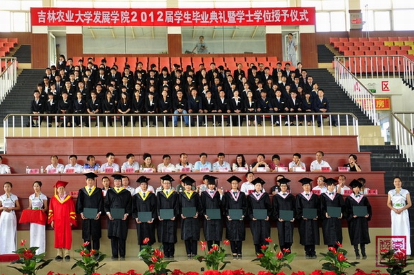初夏的校园莺飞草长、姹紫嫣红。6月9日上午,吉林农业大学发展学院2012届学生毕业典礼暨学士学位授予仪式在学校体育馆隆重举行。吉林东华教育集团总裁、吉林农业大学发展学院董事长张电达,吉林东华教育集团董事局主席、省教育厅原厅长李军,校长兼党委书记宗占国与吉林农业大学副校长孙少平等领导和嘉宾出席。