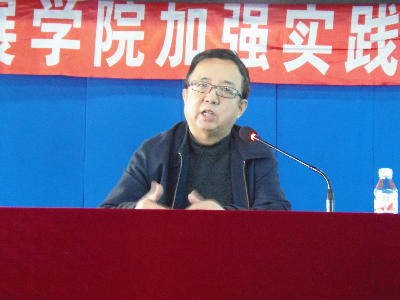 在专题报告中,赵院长围绕“正确理解实践教学体系的内涵和加强实践教学,完善体系的重要意义”、“客观认识实践教学已取得的成绩和存在的不足”、“实践教学项目工作要达到的具体目标”、和“采取的主要措施”等几个方面阐述了实践教学体系和相关管理机制。并用“回首昨天,自强不息,奋力登攀,天外有天,工作唯恐落于人后,重任一个接一个,埋头实干,苦累相伴,硕果盈枝,由衷欣慰;展望明日,追求卓越,励精图进,山外有山,工作不甘停滞不前,项目常新需常抓,刷新目标,追逐梦想,勤劳耕耘,再攀高峰。”的磅礴佳对表达了自己的心境。