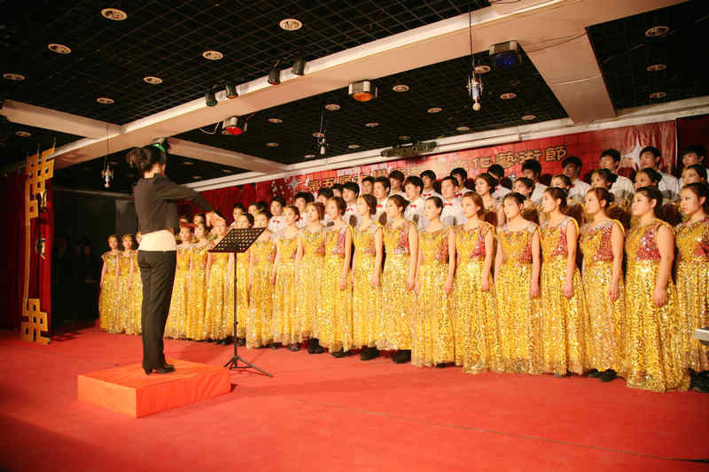 《闲聊波尔卡》和《I Will Follow Him》彰显学院特色,博得满场喝彩。接下来出场的各个学院从服装到演唱技巧都经过了精雕细琢,风采迥异,给在场的观众带来了视觉和听觉上的美妙享受。经过紧张的角逐,最终,视觉学院的《共青团员之歌》和《吃水不忘挖井人》凭借其出色的演唱技巧,声部搭配,以9.59的最高分夺冠。财经管理学院和生物食品学院平分秋色并列第二名。