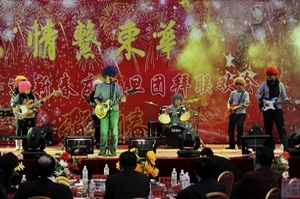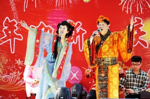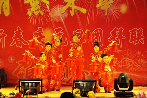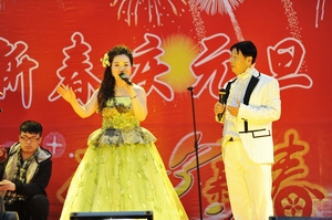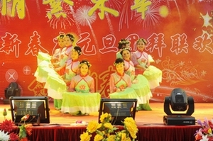 御龙温泉荡起欢悦的细浪,碧树琼枝闪动喜庆的银光。12月23日14时,吉林东华教育集团“情系东华”2011年迎新春庆元旦团拜联欢晚会在这里隆重举行。联欢会节目精彩纷呈,学院教职工、御龙温泉员工纷纷登台献艺,用甜美的歌声、抑扬的琴声,优美的舞姿共同庆祝元旦佳节。