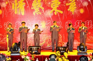 吉林东华教育集团董事局主席、吉林农业大学发展学院董事长张电达、院长宗占国、副院长栾玉振、赵中岳、李华楠、王艳梅、监事会主席郑秀峰及500多名教职员工参加了联欢会。宗占国院长发表了热情洋溢的新年贺词。他回顾了东华教育集团和吉林农业大学发展学院2010年取得的硕果,提出了新一年的奋斗目标和战略构想。