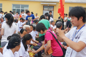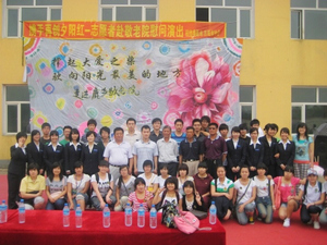 六月十二日青年志愿者们并没因端午节放假急于回家,早上七点在一号教学楼前集中准备出发,三辆校车将浩浩荡荡的志愿者群体带到了依山傍水,桃源仙境般的鹿乡镇社会福利中心,老人们因欣喜笑容满面,因激动热泪盈眶,进入敬老院志愿者们迅速有效的打扫了老人们的房间,并铺设好文艺表演的舞台,待文艺表演开始前天气如预报所述有降雨之势,大雨之神也许是位志愿者自始至终没有忍心降下不便之雨,主办方室内演出的备用方案没有使用。志愿者们虽然准备了近一个月的节目,但在汇聚着爷爷奶奶们和蔼可亲目光的舞台上演员们依旧有些紧张,老人们多才多艺也参与到表演中来,唱一段西厢,说一段快板,其乐融融的场面留在了志愿者们的相机里。节目表演过程中志愿者们将精心准备的小礼物送给了老人,老人们爱不释手。在正午的日光中老人们带着笑靥,望着我们远去的背影,轻轻的摇手依依不舍的说再见。