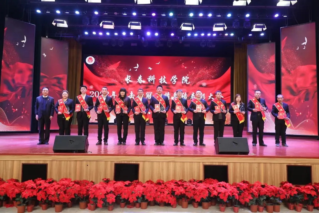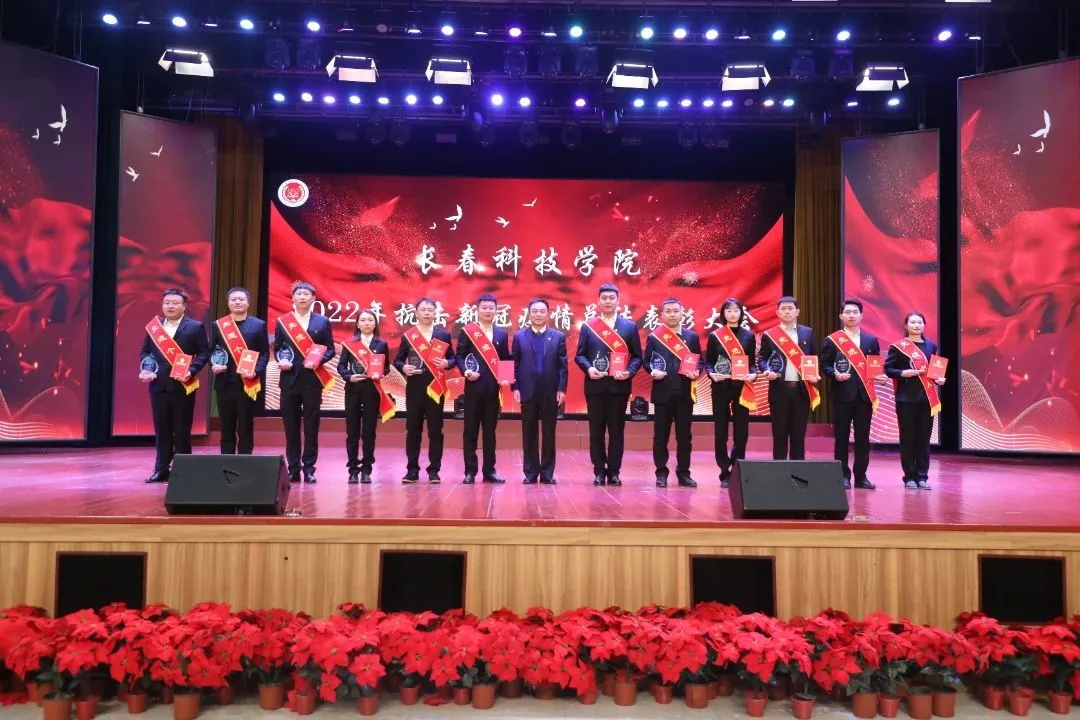 3月16日,长春科技学院在东鳌学术论坛—国际会议中心召开抗击新冠肺炎疫情表彰大会,表彰抗疫先进,动员和激励全校上下弘扬伟大抗疫精神,凝聚众志成城攻坚克难的强大正能量,以非凡之举奋力推动学校教育事业高质量发展。中沄环保科技有限公司董事长霍秋珍、处长陆圣、长春科技学院董事长张电达、校长栾立明、党委书记林佳彬、副校长盖同祥,党委副书记宋学山、副校长高杰、董事长助理张津格、校长助理刘立东、党委副书记高芳出席会议;各分院部、处室的领导,抗击疫情工作先进集体、先进个人、优秀志愿者代表及捐赠的企业、家长代表等相关人员参加表彰大会,大会由党委副书记高芳主持。