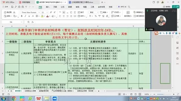 为进一步推进生命科学学院审核评估工作的扎实开展,确保评估材料的全面性、准确性与规范性,2025年1月15日,生命科学学院在线上召开了审核评估材料收查情况工作汇报会议。参与此次会议的有生命科学学院院长胡铁军、教学副院长尤丽新、学院综合办公室主任刘芳以及我院全体评估小组成员,共同聚焦审核评估材料的收查进展与后续优化方向。