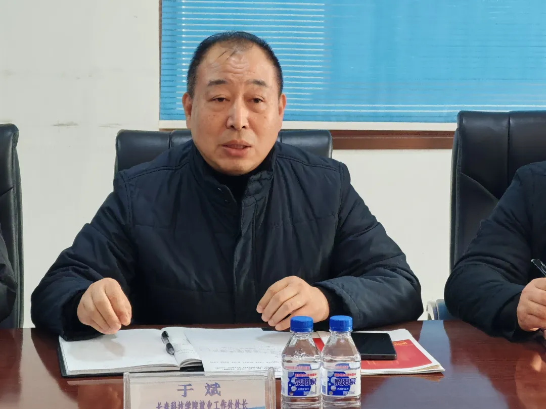处长于斌详细介绍了我校发展历程、人才培养、产教融合、学生实习就业等方面情况。