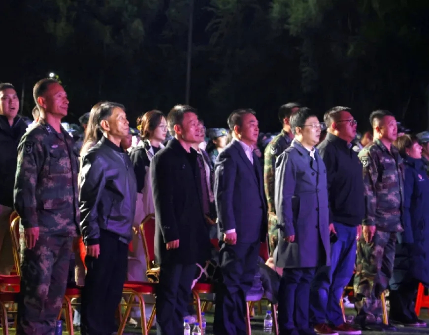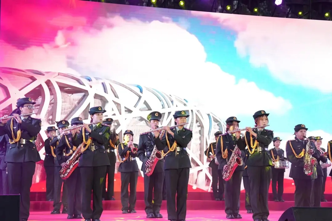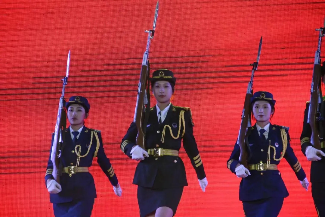 大学生艺术团军乐团演奏国歌开场,当国歌那激昂的旋律奏响,全场目光齐聚。国旗护卫队迈着整齐划一、铿锵有力的步伐迎国旗出场。他们身姿挺拔,目光如炬,每一步都带着对祖国的忠诚与敬意,震撼着人们的心灵。