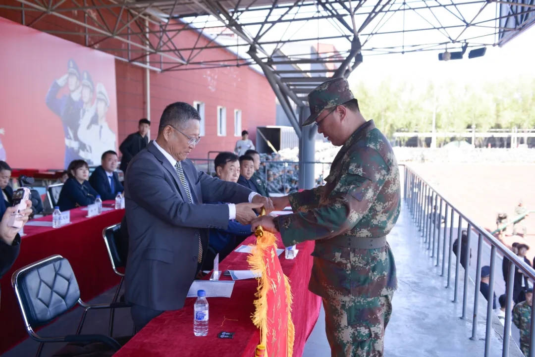 授旗仪式是活动的一个重要环节。栾立明向预备役教官赠送锦旗,对全体教官辛勤付出给与充分肯定。