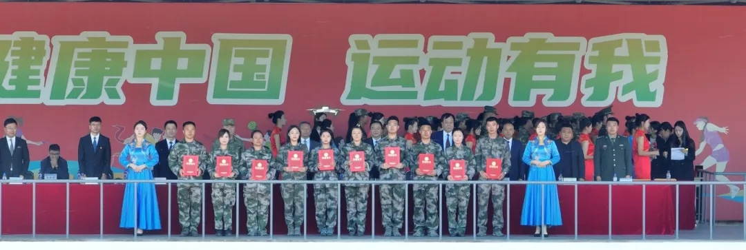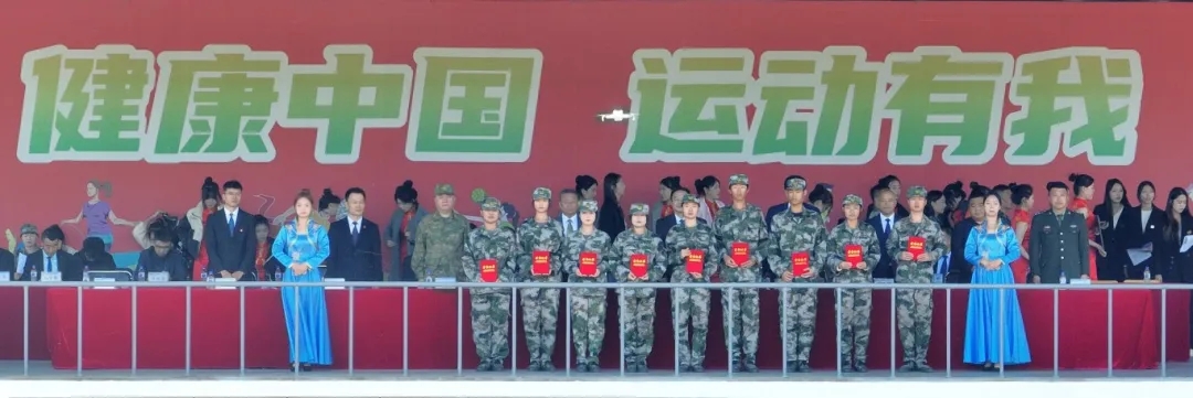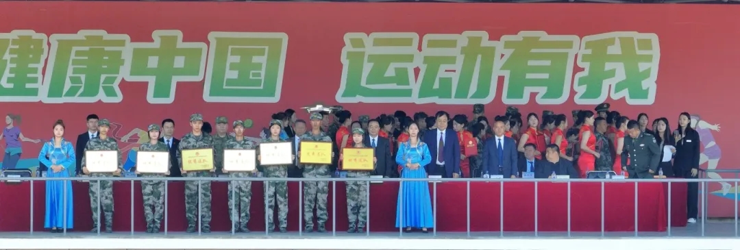 集团、校领导宣读表彰决定后,主席台就坐领导为预备役士兵代表授衔。先后给优秀连队、优秀指导员、优秀军训教官、优秀预备役教官、优秀旗手、优秀训练标兵、优秀内务标兵、军事技能比武团体前三名单位颁发了奖牌、荣誉证书。