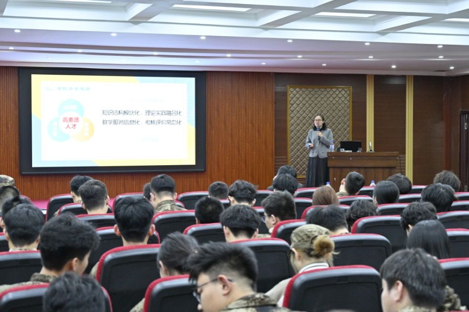 在讲解过程中,隋院长特别提到了学校“四化一体”人才培养模式和“五为一体”教学体系。她强调,“知识结构模块化、理论实践融合化、教学服务信息化、考核评价常态化”的“四化一体”人才培养模式,与“岗、课、训、赛、证”的“五为一体”教学体系紧密结合,旨在培养高素质应用型、复合型、创新型人才。卓越学分机制正是这一教育理念的重要支撑,它激励同学们在专业学习、实践创新、学科竞赛等多方面积极进取,不断提升自身综合素养,更好地适应未来社会发展需求。