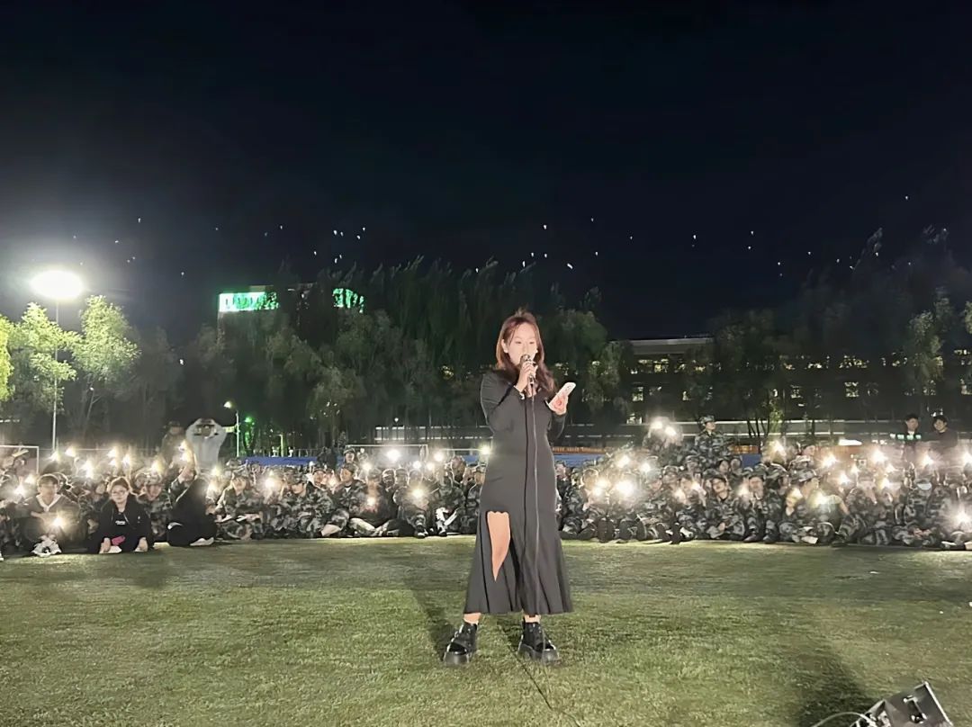 夜色渐深,星月如钩军训慰问演出在晚风中启幕在经管er们的荧光挥舞下歌舞表演精彩纷呈