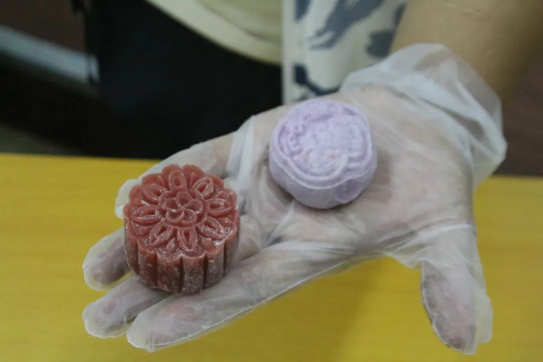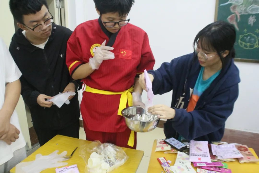 经过陈社长的讲解,同学们的兴致愈加高涨,终于到了万众期待的DIY冰皮月饼环节。在陈社长讲解完制作方法之后,同学们纷纷戴上手套开始制作冰皮,冰皮做好后包上馅料,一个个可爱的小月饼就完成了,这五颜六色的中秋小精灵寄托着中国人特有的情感和对美好生活的向往。