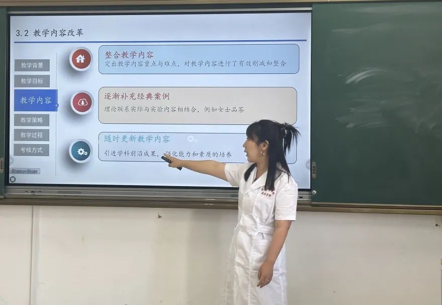 参赛教师们以饱满的热情和认真严谨的态度参与了本次大赛。依据评估工作的教师说课程要求,在比赛过程中,参赛教师分别就课程概况、教学重点、课程目标、教学设计、教学内容、教学特色、教学评价及反馈等方面进行说课,并以课本上某章节内容为例,还原自己的课堂。