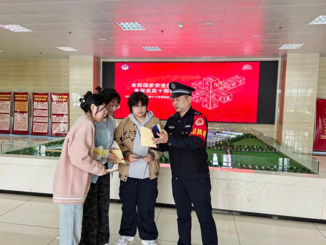4月15日是第十个全民国家安全教育日,长春科技学院安全委员会办公室联合长春市国家安全局人民防线支队和双阳区公安分局内保大队,在校园开展了“全民国家安全教育走深走实十周年”主题宣传活动。活动中,工作人员向师生宣传讲解国家安全有关常识,并现场发放《国家安全部微信公众号推文摘编》、《吉林省反间谍工作规定》、《第十个全民国家安全教育日宣传册》等千余份。