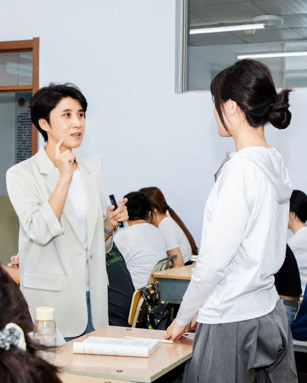 她在课堂教学上关注每个学生的情感变化和心理需求,及时关心和支持。在教学中,重注细节,从每个案例的选择到每个问题的引导,精心安排,通过生动的案例、热烈的讨论,让学生们在思想的碰撞中逐渐明晰自己的价值观和人生方向。她鼓励学生勇敢地表达自己的观点,耐心地倾听每一个声音,然后用智慧的话语给予恰当的点评和引导。根据不同专业人才培养特点和能力素质要求,发掘课程的思想政治教育资源,将爱国情怀、法治意识、社会责任、人文精神等元素融入课堂,使每堂课都成为传播正能量、弘扬主旋律的主阵地。探索形成了“五进四联”的“大思政课”教学模式,构建国防教育特色学校“大思政课”体系,开展“大中小思政课一体化”建设。她探索大思政的高效实施模式,用生活语言讲马克思主义理论,让学生爱上思政课。在她的课堂上,学生忘记了玩手机,提高了抬头率。