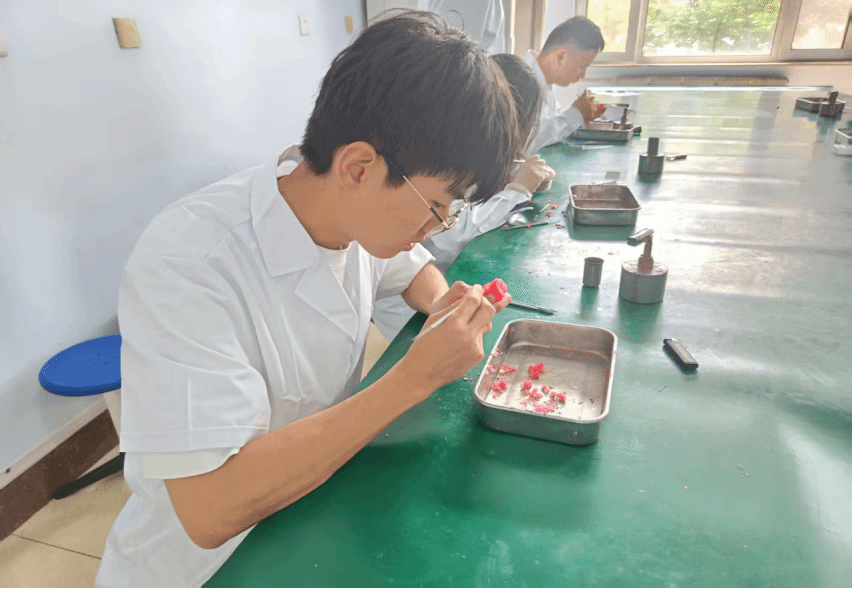 由口腔专业教师黄相道、陈金锐、张艳,高茜颖,孙晓旭,王丽颖组成的专业评审团,从牙体形态准确性、雕刻精细度、操作规范性等多个维度进行综合评分。最终,刘钧汉、张智棋等十名同学凭借出色的表现脱颖而出,成功晋级决赛。