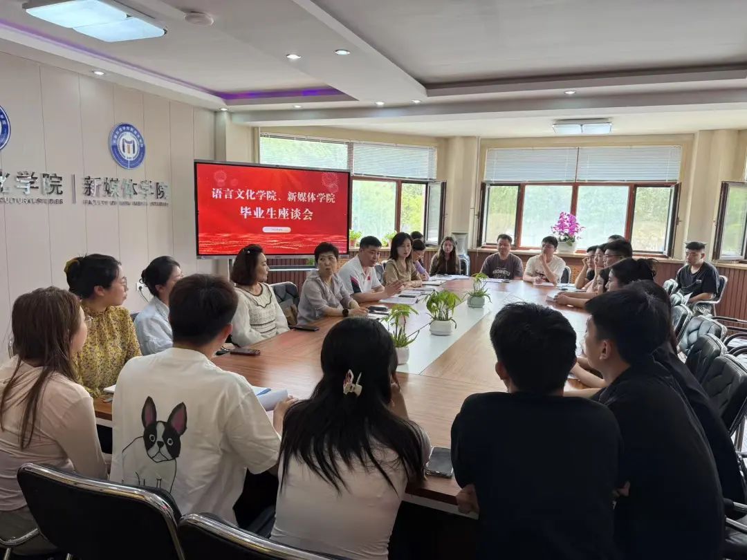 6月17日上午,语言文化学院、新媒体学院于1217会议室召开2025届毕业生座谈会,语言文化学院、新媒体学院陈院长、党总支副书记张贺亮、各专业主任及2025届毕业生辅导员姜月参会。