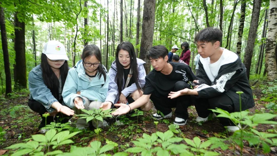 活动首日,师生们走进大顶子野山参基地,在国际级非物质文化遗产长白山采参习俗代表性传承人赵炳林老师的讲解下,大家学习识参、认参,亲手参与林下采参实践,感受“喊山”“绑红绳”等传统习俗的魅力。细雨中的原始森林更添神秘,同学们深刻领悟到“森林-土壤-微生物”共生体系的生态智慧,也对人参文化的传承与保护有了更深的敬意。