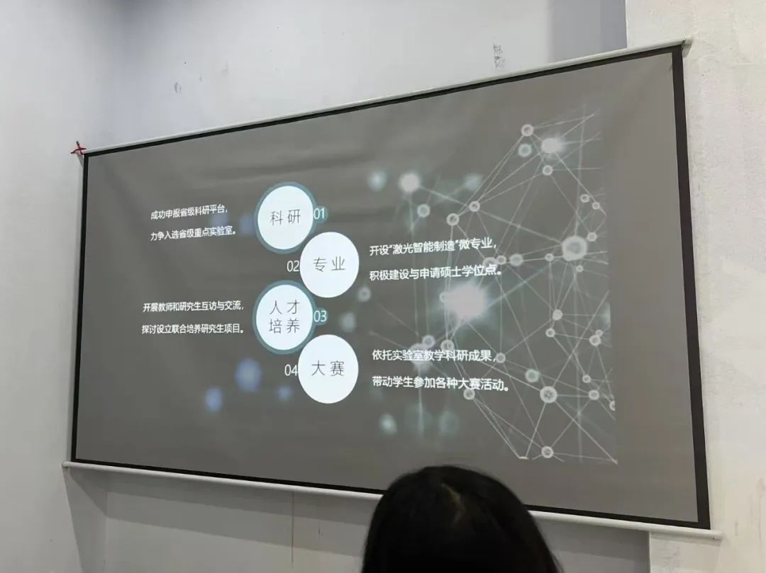 会议伊始,张洪涛博士对本学期团队工作进行全面梳理。团队紧密围绕激光智能制造技术方向,激光智能制造技术联合实验室采用长春科技学院与长春理工大学“双高校协同共建” 模式,旨在整合两校在激光技术、智能制造、材料科学等领域的设备资源与学科优势。当前智能制造产业正朝着高精度、智能化方向快速发展,实验室的建设将填补区域高校在激光加工与测量技术交叉研究领域的平台空白,推动 “产学研用” 一体化进程,为东北老工业基地产业升级提供技术支撑与人才储备。团队积极推动 “激光智能制造” 微专业建设,结合实验室资源优化实践教学体系。此外,此项目还可以促进学生参与多项学科竞赛,以赛促学,可以有效激发学生的创新思维。