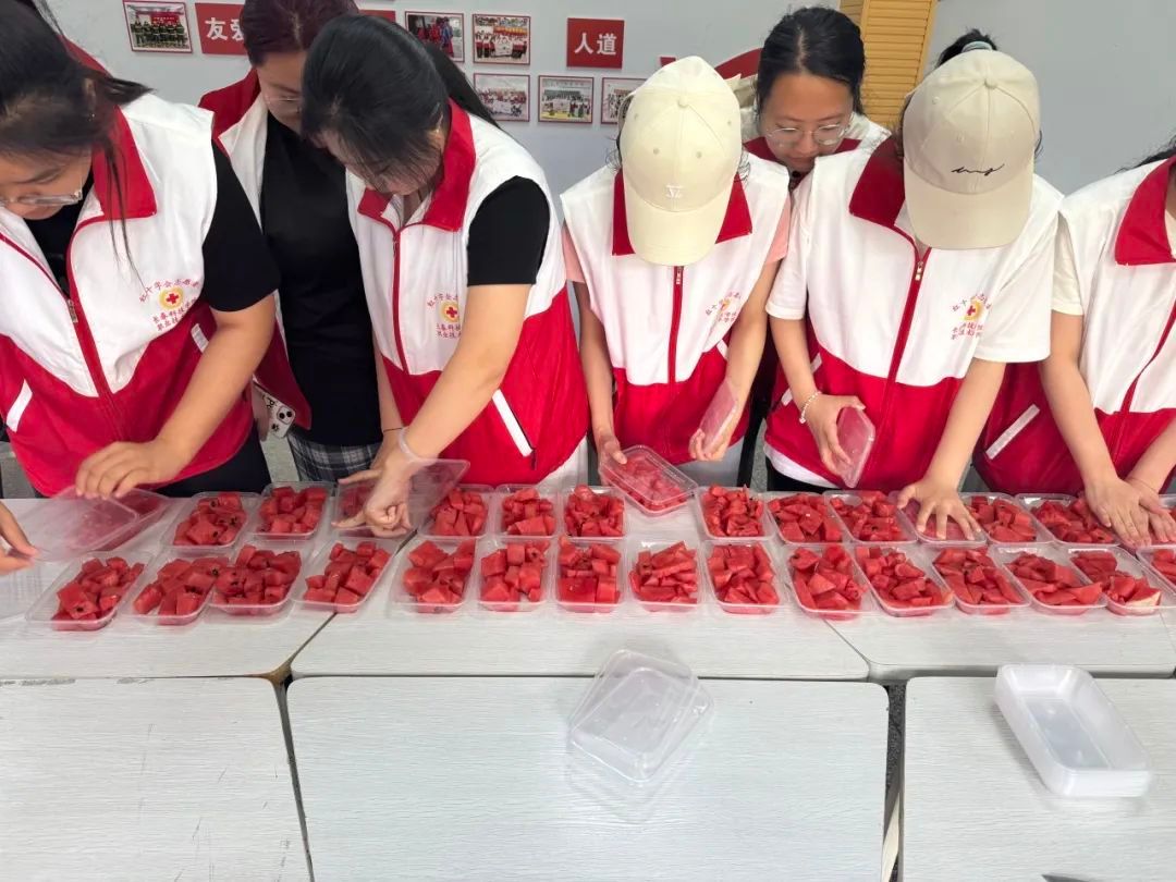 活动当日上午,志愿者们早早集合,将提前采购的西瓜仔细清洗、切块、装盒,并进行精心包装。每一个步骤都饱含着志愿者们的用心,他们希望用这份清爽甘甜,为烈日下工作的一线人员驱散暑气。