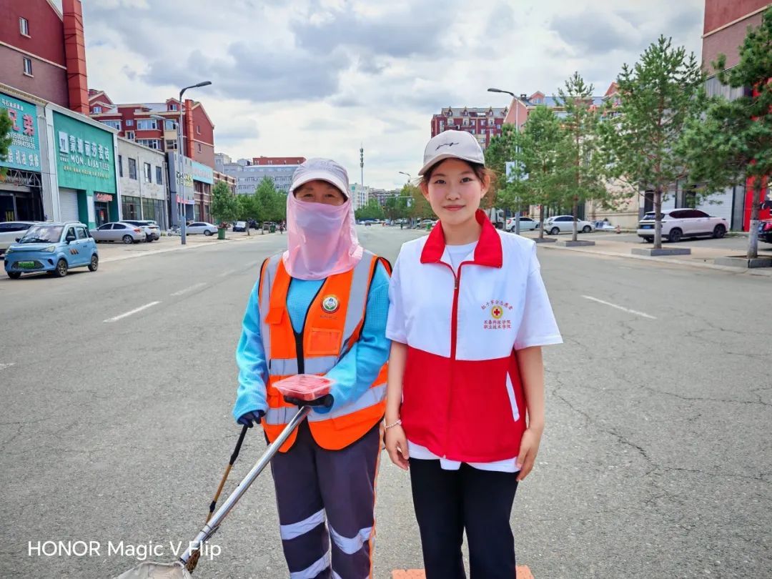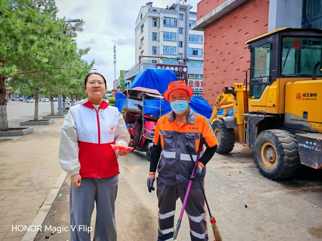 6月21日,夏至时节,热浪袭人。职业技术学院红十字应急救援协会组织开展“夏至送清凉,致敬一线工人”志愿者服务活动,为坚守在岗位上的安保人员、双阳区环卫工人、公交车司机和警察送上清凉与关怀,以实际行动传递温暖,致敬平凡而伟大的劳动者。