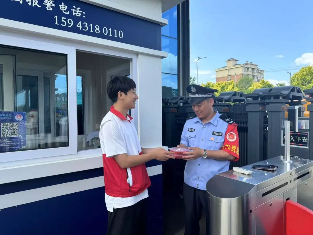 随后,志愿者们分成多个小组,带着满载心意的西瓜礼盒,分别前往不同的工作地点。在学校安保亭,志愿者们将西瓜送到安保人员手中,感谢他们日夜守护校园安全;在双阳区的大街小巷,志愿者们走到正在清扫街道的环卫工人身边,向他们道一声辛苦;在公交车站点,为刚刚结束一趟行程的公交车司机递上清凉的西瓜;在执勤岗亭,向维护秩序的警察表达敬意。
