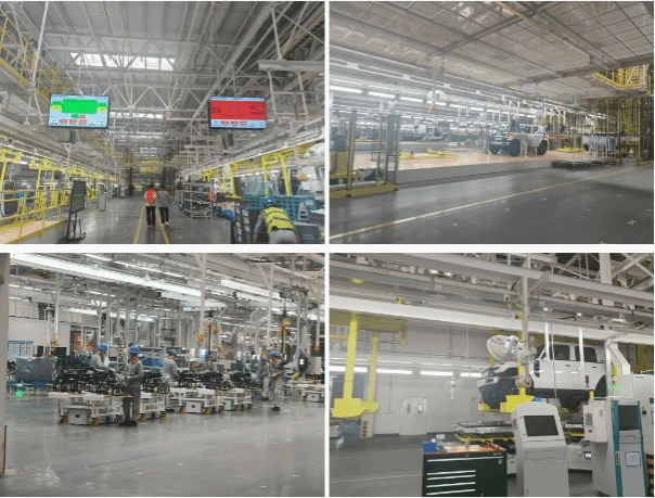 参观环节,由邓文斌和钱方飞老师带领大家通过展板与现场观摩,全面了解工厂“6 + 16 + N”战略推进的垂直整合模式,以及总装车间“精益、柔性、高效、智能”规划。先进的生产理念、高度自动化的设备,让同学们对汽车制造全流程有了深刻认知,理论知识与实践深度融合。