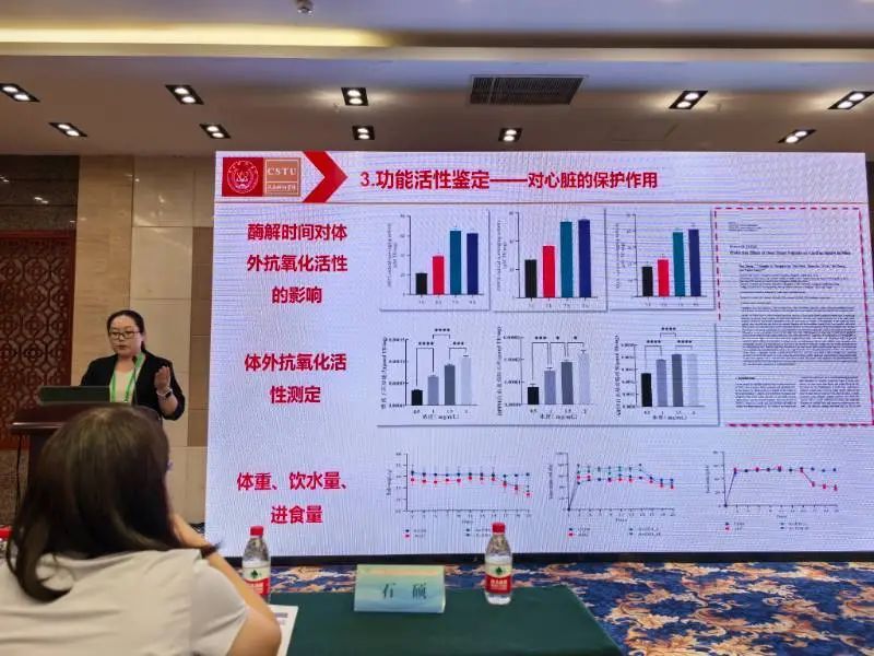 唐玉娇教授在汇报中系统阐述了依托酶解构建的高效制备工艺,突破传统加工局限实现活性成分精准提取,相关技术已获 3 项发明专利。研究证实鹿心肽在抗氧化、免疫调节等方面具有显著生物活性,对心脏及肝肾损伤模型表现出保护作用,为鹿产品功能化深加工提供了技术支撑。