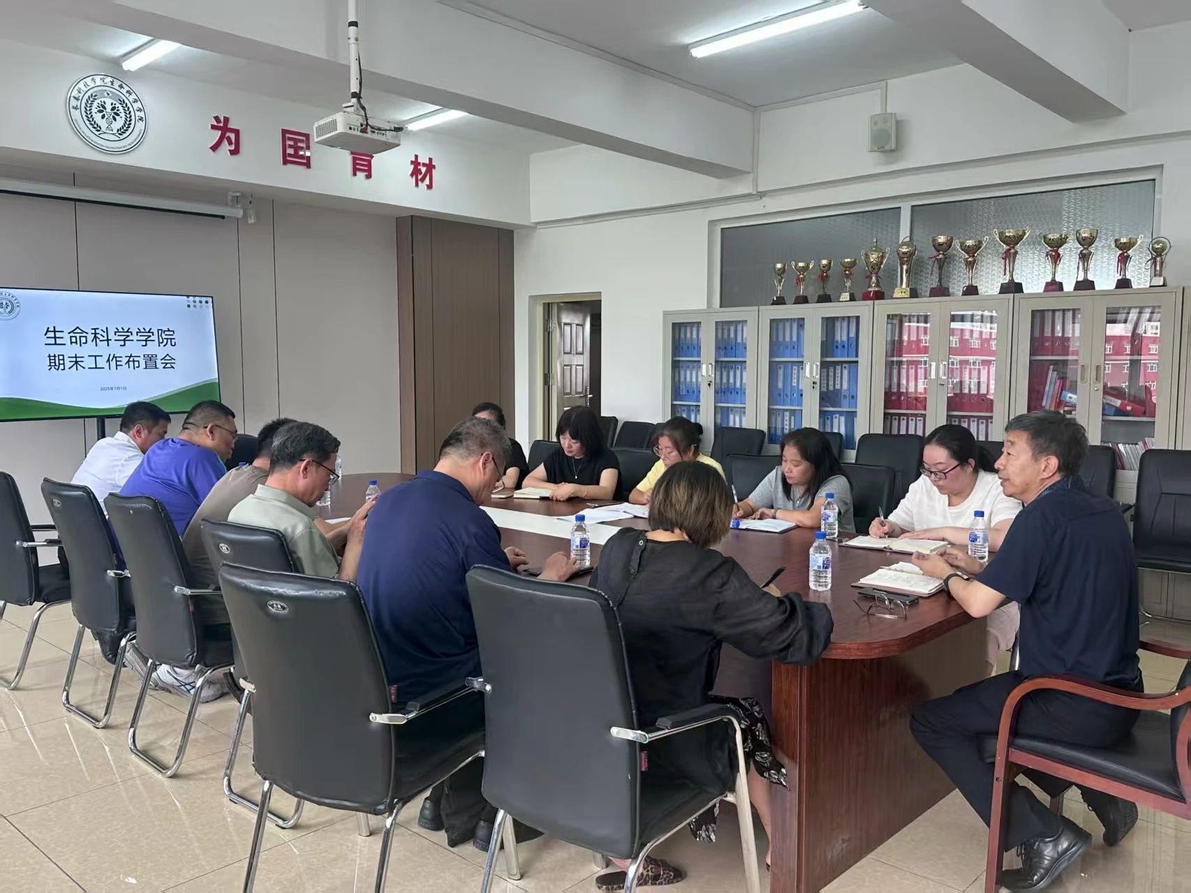 2025年7月1日,生命科学学院本学期期末工作布置会在4506会议室顺利召开。会议由院长李国江主持,教学副院长尤丽新、科研副院长唐玉娇、学院综合办公室主任刘芳、学工办主任兼分团委书记张洋洋、各专业主任及副主任、全体辅导员参会。