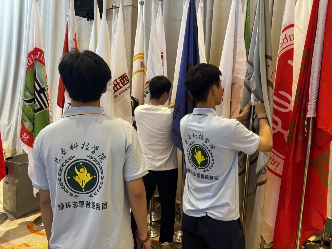 活动前期,校团委组织招募了10余名大学生志愿者。为提供更高效、精细的志愿服务,志愿者们共分为组装组、摆放组、客商接机/站组、迎宾组、引导组、签到处组、机动协调组等7个组别。