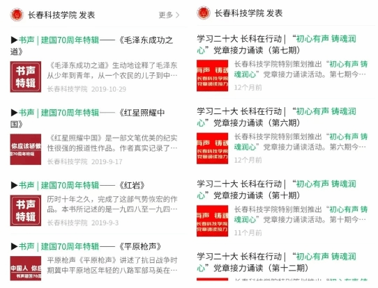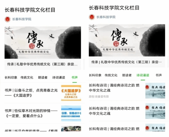 目前,“书声·朗读者”累计发布300余期,内容涵盖人文经典,红色经典,学科经典,为广大师生搭建了学习、交流、沟通、展示的平台。下一步,长春科技学院将进一步推动全民阅读走向深入,以文弘业、以文培元、以文立德、以文铸魂,用心打造读书品牌,涵育“爱读书、读好书、善读书”的文化风尚。