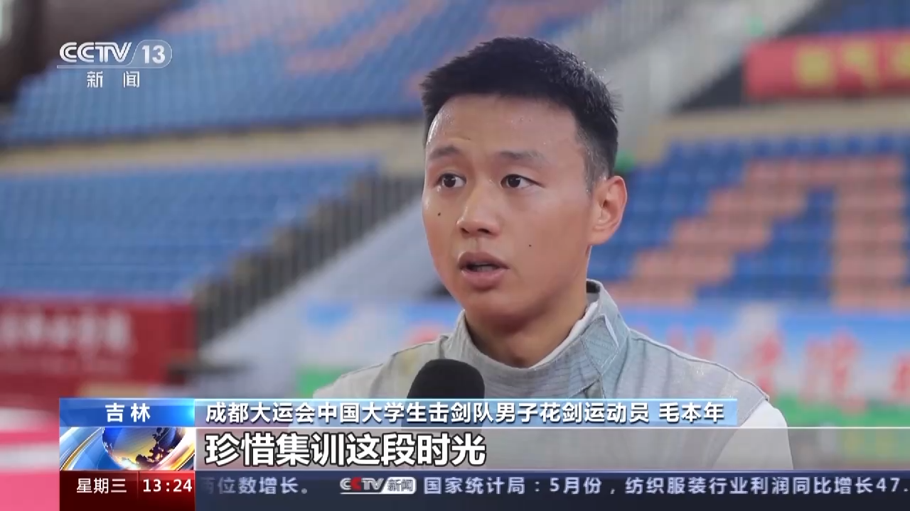 成都大运会中国大学生击剑队男子花剑运动员 毛本年:很荣幸这次大运会能代表中国国家队参赛,还是感觉到很自豪的,自己尽力去打好每一场比赛,珍惜集训这段时光,跟队友和教练老师们相互学习,互相成长。